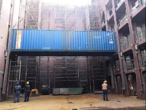 ????實現這一突破的是黃埔文沖為新加坡太古公司建造的2750箱集裝箱船2號船H5531。通過全站儀采集艙內導架數據,利用計算機將導架間數據模型與集裝箱數據模型進行對比分析,從而實現模擬試箱。通過對H5531船全船導架數字化模擬,并將其與傳統實體試箱進行對比,狀態完全吻合。