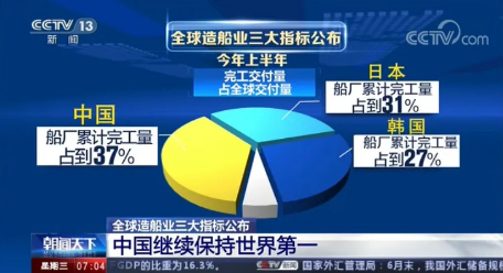 全球權威航運造(zao)船(chuan)機構(gou)公布(bu)的最新數據顯示(shi),今年上半年,全球造(zao)船(chuan)業(ye)三大指標(biao),中(zhong)國再次(ci)領先,繼續保(bao)持世界第一(yi)的紀錄。