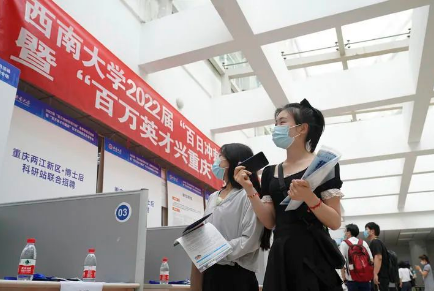 圖片(pian)▲在位于重慶(qing)市北碚區的西(xi)南大(da)學(xue),應屆畢(bi)業生(sheng)參加“百萬英才興重慶(qing)”招聘(pin)會(2022年(nian)5月13日攝(she))。用(yong)人(ren)單位提供了涉及(ji)教育(yu)、人(ren)工智能、汽車制造等領域的3000多個崗位供畢(bi)業生(sheng)選擇。新華社發(秦廷富 攝(she))