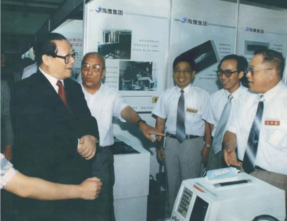 江澤民(min)同(tong)志曾參(can)觀(guan)系統工程研究院、中船電科(ke)旗下海鷹(ying)公司(si)產品。圖(tu)為(wei)1995年,江澤民(min)同(tong)志參(can)觀(guan)海鷹(ying)公司(si)展臺。