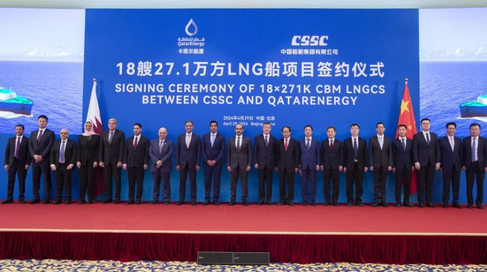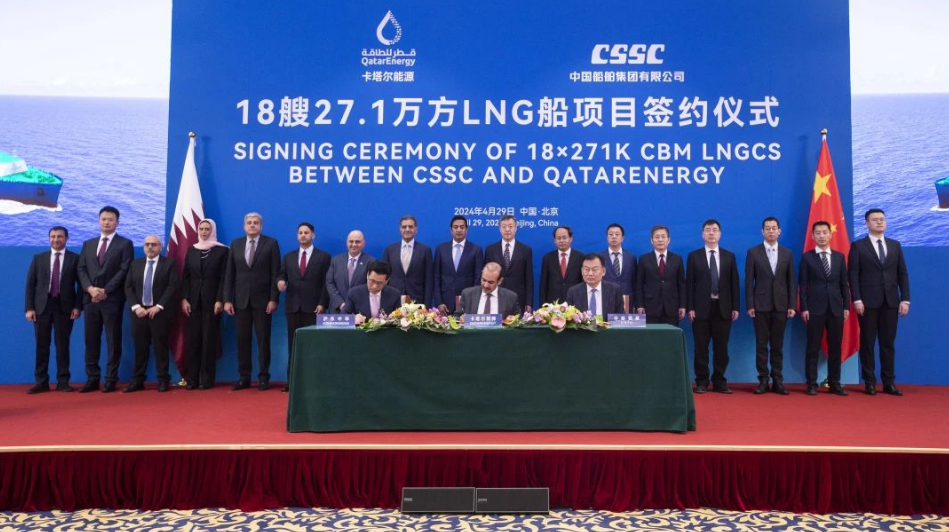 薩阿德·謝(xie)里達·阿爾(er)卡(ka)比在(zai)致辭中表示,卡(ka)塔爾(er)能(neng)源與中國船(chuan)(chuan)舶(bo)集團(tuan)簽(qian)署18艘全球最大(da)27.1萬立方米(mi)LNG船(chuan)(chuan)項目建造合同,創造了單筆新船(chuan)(chuan)訂(ding)單金額最高紀(ji)錄(lu),是一次(ci)歷史性的(de)突破。該批次(ci)船(chuan)(chuan)舶(bo)將支持(chi)(chi)卡(ka)塔爾(er)能(neng)源在(zai)北部氣田擴大(da)生產能(neng)力,滿足船(chuan)(chuan)隊(dui)長期的(de)更(geng)新需求。希望(wang)卡(ka)塔爾(er)能(neng)源與中國船(chuan)(chuan)舶(bo)集團(tuan)今后能(neng)進一步深化(hua)務實合作,共(gong)同助力行業(ye)可持(chi)(chi)續發展(zhan)。