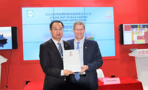 12月4日,法國船級社為中國船舶集團七〇八所簽發21萬噸雙燃料散貨船初步認可證書。