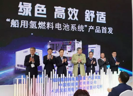 12月3日,中國船舶集團在海事展上舉行“船用氫燃料電池系統產品發布會”,推出由中國船舶集團七一二所研發的500千瓦級船用燃料電池系統,并計劃在內河開展實船示范應用。這也是國內首臺船用氫燃料電池系統。