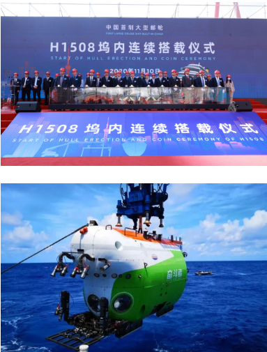 2020年,中國船舶集團在科技創新方面取得重要突破,核心競爭力持續提升。“奮斗者”號載人潛水器在馬里亞納海溝10909米處成功坐底,實現了中國載人深潛首次萬米突破;船用低速機工程原理樣機、工程樣機、關重件樣件試驗驗證取得新成果;與廣東省簽訂船舶LNG動力改造項目合作框架協議。在持續推進自主可控工程與關鍵核心技術攻關方面,中國船舶集團承擔多項攻關任務實現關鍵核心技術突破。在軍民品科研開發、先進制造技術研發應用、科技創新基礎夯實方面,中國船舶集團也開展了大量工作,并取得顯著成效。