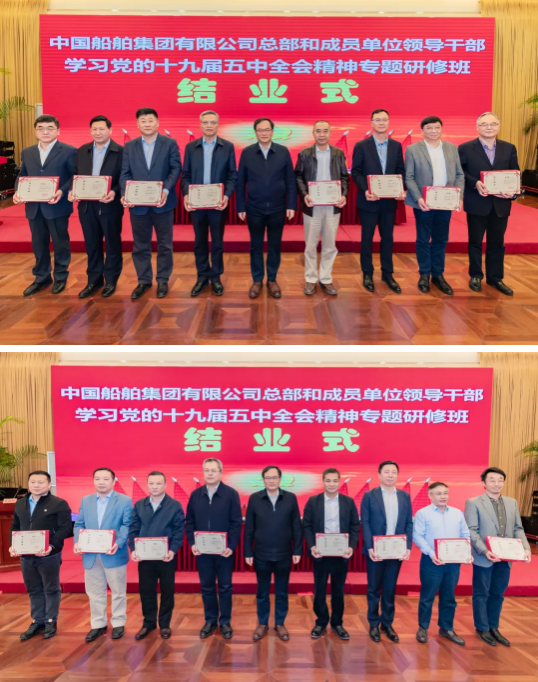 4月23日,中(zhong)國船舶集(ji)團有限公司總(zong)部(bu)(bu)和(he)成員(yuan)(yuan)單位領導干(gan)部(bu)(bu)學(xue)習(xi)(xi)黨的十九屆五中(zhong)全(quan)會精(jing)神和(he)黨史學(xue)習(xi)(xi)教育專(zhuan)題研修班圓滿結業。培訓期間,中(zhong)國船舶集(ji)團黨組書(shu)記(ji)(ji)、董事長雷(lei)凡培以《深入貫徹(che)落實習(xi)(xi)近平總(zong)書(shu)記(ji)(ji)重要指示(shi)批示(shi)精(jing)神 努(nu)力加快(kuai)建(jian)設世界一流(liu)船舶集(ji)團》為(wei)題給(gei)全(quan)體學(xue)員(yuan)(yuan)們講授(shou)了(le)第(di)一課,中(zhong)國船舶集(ji)團黨組副書(shu)記(ji)(ji)、總(zong)經(jing)理楊金(jin)成,黨組成員(yuan)(yuan)、副總(zong)經(jing)理孫(sun)偉、盛紀綱以及相關部(bu)(bu)門負責人先后出席各期結業式并聽取了(le)學(xue)員(yuan)(yuan)們的學(xue)習(xi)(xi)匯報(bao)。
