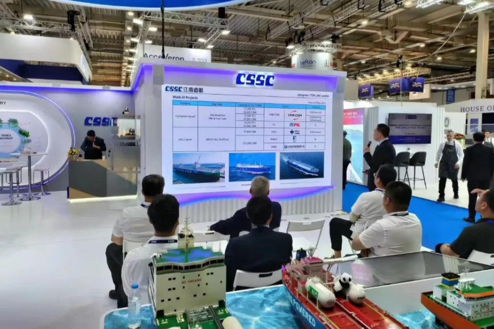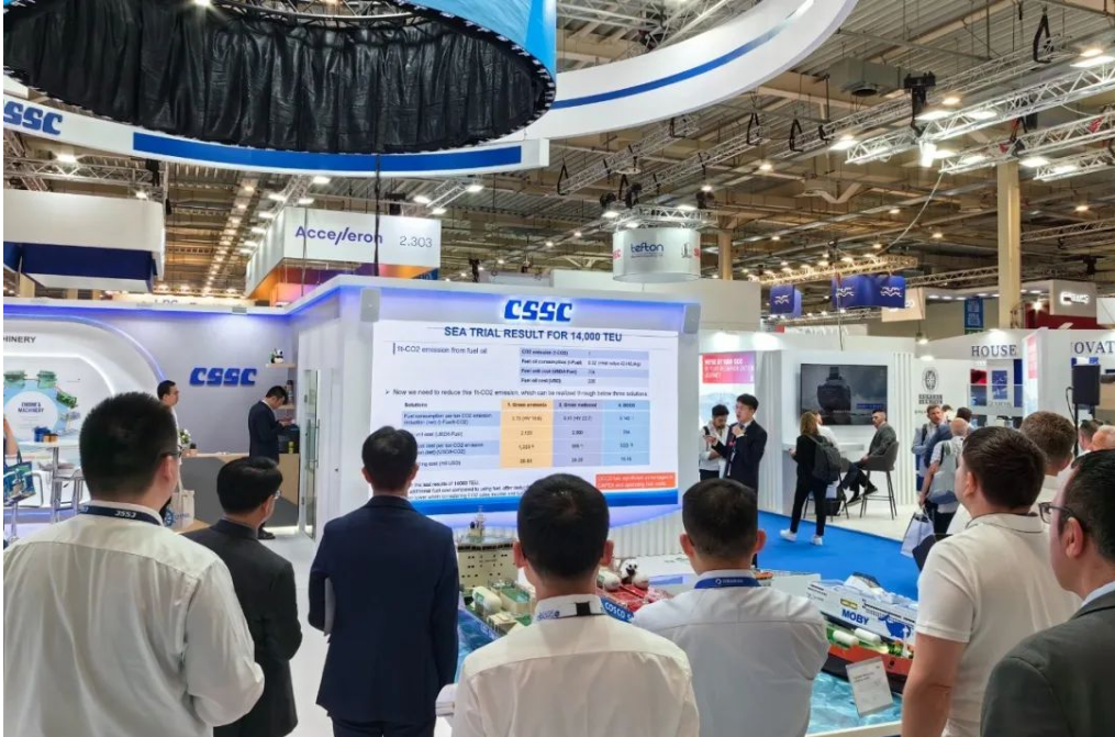 此次(ci)展(zhan)會,中國船(chuan)(chuan)(chuan)舶集(ji)團(tuan)攜旗下19家成員單位(wei)參展(zhan),有關成員單位(wei)負(fu)責人(ren)率隊赴展(zhan)會開(kai)展(zhan)重點(dian)船(chuan)(chuan)(chuan)海(hai)項目經營洽談并(bing)拜訪當地和(he)周邊國家客戶。集(ji)團(tuan)公司以“共贏未來”為參展(zhan)主題,設置集(ji)團(tuan)總(zong)體(ti)區、綠色航運(yun)解決(jue)方案區、低碳環保配套(tao)設備區共3個展(zhan)示(shi)區域,重點(dian)展(zhan)示(shi)了135500總(zong)噸大(da)型郵輪、175000方LNG運(yun)輸船(chuan)(chuan)(chuan)、24000箱(xiang)超大(da)型集(ji)裝箱(xiang)船(chuan)(chuan)(chuan)、210000噸氨燃料散貨(huo)船(chuan)(chuan)(chuan)、LNG雙燃料VLCC等一系(xi)(xi)(xi)列高(gao)技(ji)術、高(gao)附加值明星(xing)產(chan)品(pin),以及(ji)(ji)CPGC-WinGD 10X92DF-M甲醇(chun)雙燃料發動(dong)機、船(chuan)(chuan)(chuan)用碳捕(bu)捉系(xi)(xi)(xi)統等全球(qiu)船(chuan)(chuan)(chuan)東高(gao)度(du)關注的綠色低碳配套(tao)設備。同時,通過展(zhan)臺上醒(xing)目的品(pin)牌標識、層級化的品(pin)牌體(ti)系(xi)(xi)(xi)圖、富有感染力的品(pin)牌推介視頻(pin),首次(ci)面(mian)向全球(qiu)客戶,立體(ti)化展(zhan)示(shi)“中國船(chuan)(chuan)(chuan)舶”品(pin)牌及(ji)(ji)下屬(shu)企業品(pin)牌和(he)產(chan)品(pin)品(pin)牌體(ti)系(xi)(xi)(xi),進一步強化了集(ji)團(tuan)公司品(pin)牌形象。