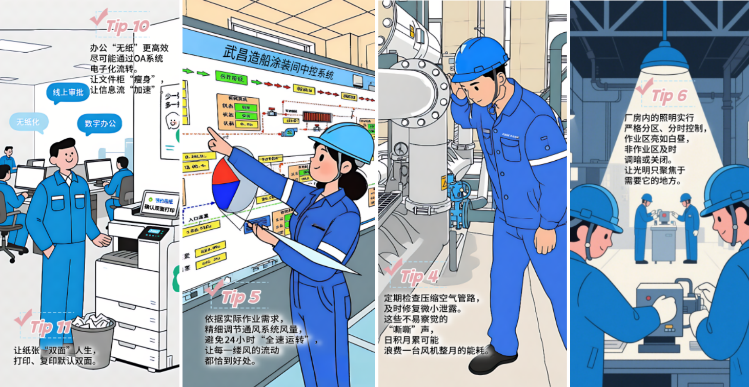 武昌造船在節(jie)(jie)能(neng)(neng)(neng)宣(xuan)傳(chuan)周期間組織(zhi)開(kai)(kai)展(zhan)了“船廠節(jie)(jie)能(neng)(neng)(neng)秘籍”征集活動(dong)(dong),以(yi)船廠員(yuan)工(gong)(gong)的一(yi)天為(wei)軸線,收(shou)集到(dao)各類(lei)節(jie)(jie)能(neng)(neng)(neng)基(ji)(ji)本操(cao)作,形(xing)成了《這些(xie)基(ji)(ji)本操(cao)作,我(wo)知道你一(yi)定能(neng)(neng)(neng)做(zuo)到(dao)》宣(xuan)傳(chuan)材(cai)料,并通(tong)過(guo)公司公眾號發(fa)布,向員(yuan)工(gong)(gong)普及節(jie)(jie)能(neng)(neng)(neng)知識(shi)與技巧,擴大節(jie)(jie)能(neng)(neng)(neng)宣(xuan)傳(chuan)覆蓋面。同時開(kai)(kai)展(zhan) “停用空調(diao)”能(neng)(neng)(neng)源緊(jin)缺體驗行(xing)動(dong)(dong),倡(chang)議全體員(yuan)工(gong)(gong)在全國低碳日,關閉辦公室、會議室及非(fei)必要區域空調(diao)設備,通(tong)過(guo)實際行(xing)動(dong)(dong)感(gan)受(shou)能(neng)(neng)(neng)源緊(jin)缺,踐行(xing)節(jie)(jie)能(neng)(neng)(neng)理(li)念,進一(yi)步增(zeng)強(qiang)員(yuan)工(gong)(gong)資源憂患意識(shi)。