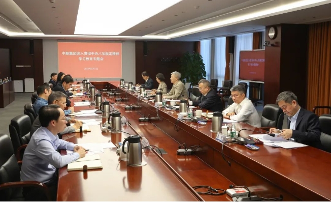 5月7日,中國船舶集團有限公司黨組召開深入貫徹中央八項規定精神學習教育專題會。中船集團黨組書記、董事長徐鵬出席會議并講話。黨組副書記、董事、總經理王國強主持會議。黨組副書記、董事、學習教育工作專班主任賈海英傳達了中央指導組培訓會議精神以及國務院國資委黨委學習教育讀書班暨理論學習中心組集體學習會精神。在滬黨組成員參會。