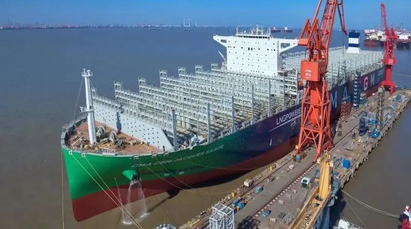 ????3月16日,中國(guo)船舶集團所屬滬(hu)東(dong)中華建造的全(quan)球(qiu)首艘23000箱(xiang)液化天然氣(qi)(LNG)動(dong)力(li)集裝箱(xiang)船開啟了(le)常規試航(hang)(hang)之旅。該(gai)超(chao)大型(xing)LNG動(dong)力(li)集裝箱(xiang)船總長400米,型(xing)寬61.3米,服(fu)務航(hang)(hang)速22節,載重量近(jin)22萬噸,被業界形容(rong)為“綠(lv)巨人”;采用了(le)一顆(ke)獨(du)一無二的“綠(lv)色心臟”——一個18600立方米的MK Ⅲ薄膜式燃料艙,能滿足全(quan)球(qiu)最嚴格排放要求。