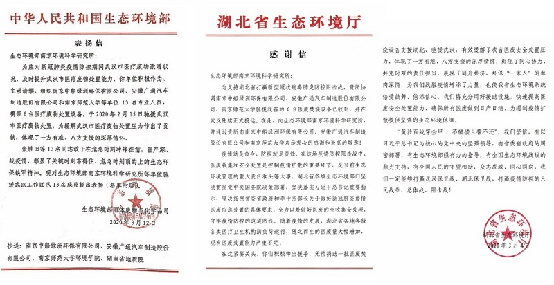 ????近日,國(guo)(guo)家生(sheng)(sheng)態(tai)環境部、湖北省生(sheng)(sheng)態(tai)環境廳分別發出表(biao)揚信(xin)和(he)感謝信(xin),對中國(guo)(guo)船(chuan)(chuan)舶集團所屬中船(chuan)(chuan)綠洲等(deng)在疫情防控期間(jian)作出貢(gong)獻的單位給予高度(du)贊(zan)揚,表(biao)示(shi)衷(zhong)心的感謝,并對包含中船(chuan)(chuan)綠洲旗下環保(bao)公司陳(chen)紀賽(sai)、陳(chen)良義、王小峰、周浩在內(nei)的13名(ming)生(sheng)(sheng)態(tai)環境“鐵軍”提出表(biao)揚。