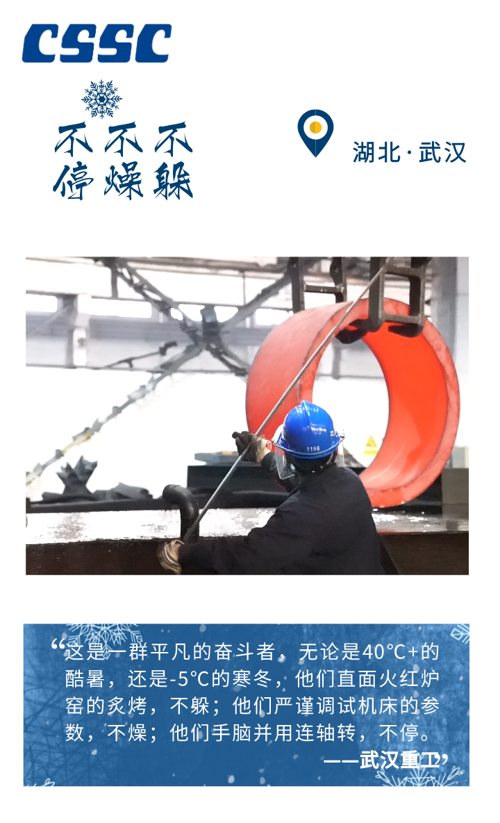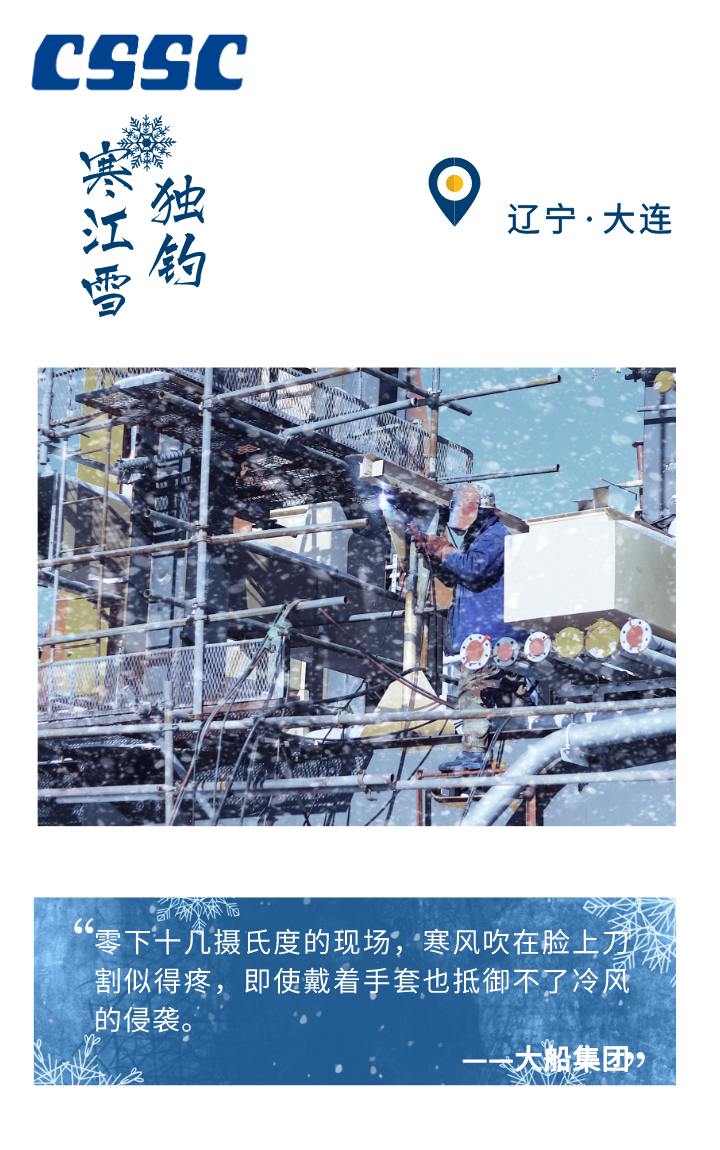 -5℃、-10℃、-20℃ …… 在這個不斷刷新寒冷指數的冬季 從未缺席中國船舶人勞作的身影 皎潔的白雪、火紅的爐膛 呼嘯的海風、疾行的足音 奏響了冬季船舶人的 冰與火之歌