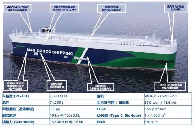 該船的關鍵性設備系統(WinGD X-DF主機及iCER系統、LNG圍護和供氣系統、滾裝設備系統)均采用中國船舶集團旗下公司或科研院所產品,顯著提升了該新造船項目的核心設備國產自主化率,在我國大型滾裝船型建造史上具有里程碑意義,建成交付后將成為中國最大、世界領先、國產化程度最高的遠洋汽車運輸船,能夠積極滿足上汽集團以及國內其它自主、外資品牌不斷增長的出口業務需求,也將加快推動高含金量“中國智造”走向全球。