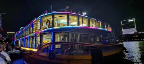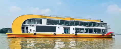 “廣游19”配置3015kWh純鋰電(dian)池驅動,Z形全回(hui)轉(zhuan)舵槳推進,經濟航速下可(ke)滿足7小時續航要求。船體上建(jian)采(cai)用大面積玻璃幕墻,具有(you)開(kai)闊(kuo)的觀光(guang)視(shi)野,可(ke)360度(du)觀賞(shang)珠(zhu)江日景(jing)夜景(jing),可(ke)提供江景(jing)游覽、娛樂餐飲、會(hui)議招待、婚禮、音樂舞會(hui)、年會(hui)等綜(zong)合服務。