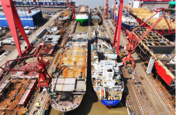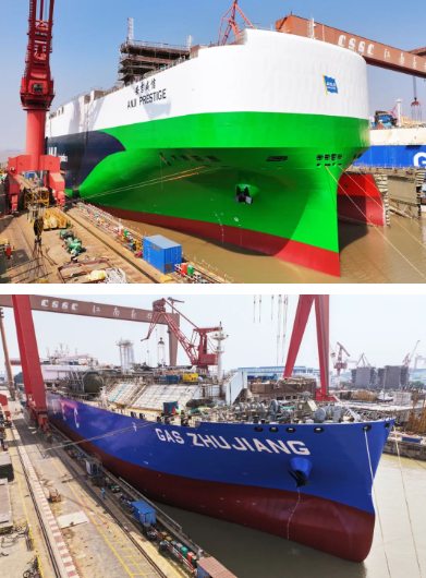 8月11日,中國船(chuan)舶(bo)集(ji)團旗下江南(nan)造(zao)船(chuan)4號船(chuan)塢(wu)迎來一(yi)艘(sou)(sou)99000立(li)方米超大型乙(yi)烷(wan)乙(yi)烯運輸(shu)(shu)船(chuan)(VLEC)和(he)一(yi)艘(sou)(sou)7800車位(wei)汽車運輸(shu)(shu)船(chuan)(PCTC)出(chu)塢(wu) ,一(yi)艘(sou)(sou)99000立(li)方米VLEC半船(chuan)和(he)一(yi)艘(sou)(sou)7800車位(wei)PCTC半船(chuan)同(tong)步起浮,達成了(le)“PV同(tong)步”建(jian)造(zao)模(mo)式的(de)首批(pi)次出(chu)塢(wu)。