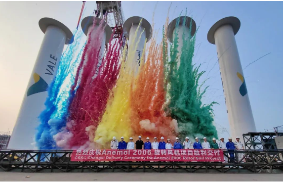 日前(qian),中(zhong)國船(chuan)舶(bo)集團旗下中(zhong)船(chuan)澄(cheng)(cheng)西為Anemoi Marine Technologies公司(si)建(jian)造(zao)的(de)最新型5套(tao)35米折疊式船(chuan)用轉子(zi)帆順利交付發運。據悉,該項目轉子(zi)帆將安裝在全(quan)球最大(da)(da)礦砂船(chuan)——40萬噸(dun)級Valemax型“Sohar Max”號上,屆時將組成目前(qian)全(quan)球最大(da)(da)的(de)風力轉子(zi)推進(jin)系統,標志著中(zhong)船(chuan)澄(cheng)(cheng)西在深耕綠(lv)色船(chuan)舶(bo)節(jie)能減(jian)排、攻(gong)堅轉子(zi)帆建(jian)造(zao)領域再次(ci)取(qu)得重大(da)(da)突破(po)。