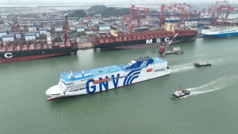 近(jin)日,廣船(chuan)國際還交付了MSC/GNV1785客(ke)/3080米車道豪(hao)華客(ke)滾船(chuan)“GNV·獵戶座”號和(he)16000TEU雙燃料動力(li)集裝箱船(chuan)“MSC GIOIA TAURO”號。
