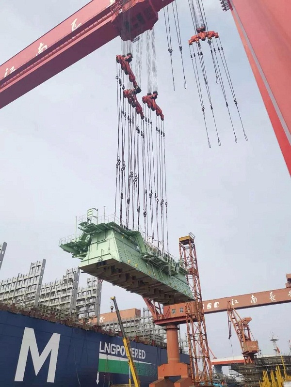 ????他們為法國達飛海運建造(zao)的(de)全(quan)球最大(da)雙燃料集裝(zhuang)箱船(chuan)(chuan) 23000箱系列船(chuan)(chuan)的(de)第二艘船(chuan)(chuan)主(zhu)機吊裝(zhuang)完(wan)成,創造(zao)了國內迄今(jin)為止該型號主(zhu)機吊裝(zhuang)周期(qi)最短紀錄。此次(ci)吊裝(zhuang)的(de)主(zhu)機太大(da),總(zong)重量高達2200噸,公司要求7天完(wan)成主(zhu)機吊裝(zhuang)、安裝(zhuang)的(de)目標。按照傳統的(de)工作方式(shi),這幾乎是不(bu)可能完(wan)成的(de)任務,整個(ge)項目的(de)參(can)與人員面臨(lin)前所未有(you)的(de)壓力。