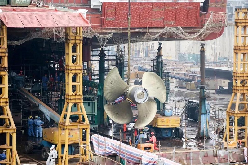 ????廣船(chuan)國際(ji)自2月(yue)10日起(qi)復工復產,其中阿爾及利(li)亞客滾(gun)船(chuan)建(jian)造(zao)是廣船(chuan)國際(ji)重點(dian)工作之一。廣船(chuan)國際(ji)先后克服勞動力不足和資材供(gong)應受阻(zu)等客觀困難,逆“疫”而(er)上,確保該(gai)船(chuan)順(shun)利(li)出塢。