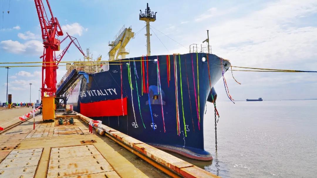 10月26日,由中國船舶集團旗下滬東中華為商船三井建造的18600立方米液化天然氣(LNG)加注船“天然氣·活力”號在上海命名。