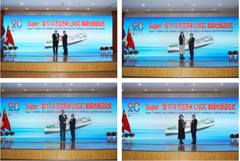 12月(yue)16日,由中(zhong)國船(chuan)舶集(ji)團旗下滬東中(zhong)華與法國GTT公(gong)司(si)聯合研發(fa)(fa)的全(quan)球(qiu)最(zui)(zui)新(xin)一代(dai)“長(chang)恒系列(lie)”17.4萬立(li)方米(mi)液化天然氣(LNG)運輸船(chuan)獲(huo)得美國船(chuan)級(ji)(ji)社(she)(ABS)、法國船(chuan)級(ji)(ji)社(she)(BV)、英國勞氏(shi)船(chuan)級(ji)(ji)社(she)(LR)、DNV等(deng)四(si)家國際著(zhu)名船(chuan)級(ji)(ji)社(she)頒發(fa)(fa)的船(chuan)型設(she)計(ji)通用認可(GDA)、入級(ji)(ji)預先認可(PCA)等(deng)證書(shu)。標(biao)志著(zhu)這(zhe)款集(ji)最(zui)(zui)新(xin)設(she)計(ji)理念、最(zui)(zui)優技術裝備(bei)、最(zui)(zui)強環(huan)保性能、最(zui)(zui)具前瞻性于一身的“長(chang)恒系列(lie)”船(chuan)型達到可以(yi)實船(chuan)建(jian)造的狀態。這(zhe)是(shi)世界(jie)LNG船(chuan)發(fa)(fa)展史上的重大(da)事件,更是(shi)中(zhong)國在LNG船(chuan)研發(fa)(fa)設(she)計(ji)領域從跟跑(pao)、并跑(pao)到領跑(pao)進程(cheng)中(zhong)一座重要的里程(cheng)碑(bei)。