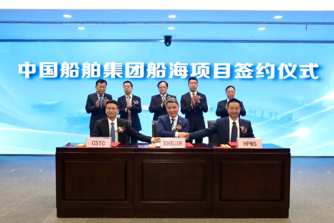 船舶建造合同簽約儀式上,在相關方領導的(de)共同見證下,