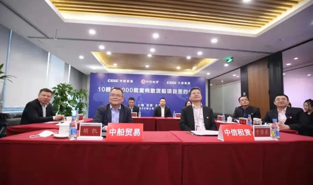 3月29日,中(zhong)國(guo)船(chuan)(chuan)舶集團旗(qi)下中(zhong)船(chuan)(chuan)貿易聯合大船(chuan)(chuan)集團與中(zhong)信金(jin)融租賃有限公(gong)司(si)以“云簽約(yue)”的形式(shi)正(zheng)式(shi)簽署10艘6.5萬(wan)噸散貨(huo)船(chuan)(chuan)新造船(chuan)(chuan)合同。該批船(chuan)(chuan)舶完(wan)工交付后將租賃給國(guo)內一流(liu)航(hang)運(yun)公(gong)司(si),服(fu)務國(guo)家(jia)資源能源運(yun)輸,主(zhu)要運(yun)營(ying)國(guo)內沿(yan)海(hai)航(hang)線(xian)及長(chang)江沿(yan)線(xian)。