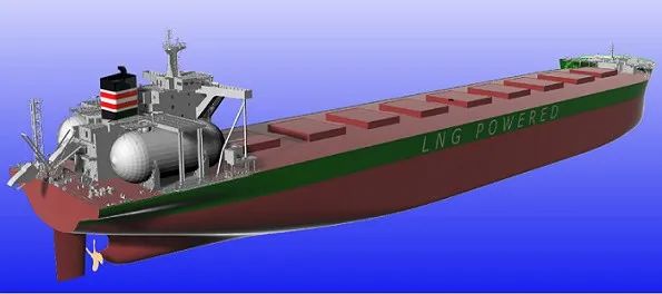 18萬噸好(hao)望角型(xing)雙燃(ran)(ran)料(liao)散貨船(chuan)由外(wai)高橋造船(chuan)自主(zhu)設計,采(cai)用LNG燃(ran)(ran)料(liao)和(he)傳(chuan)統燃(ran)(ran)料(liao)油驅動(dong),共配置兩個(ge)C型(xing)LNG燃(ran)(ran)料(liao)罐(guan),可一次性滿足完(wan)成中國至澳大(da)利亞(ya)航(hang)線兩個(ge)來回或中國至巴西航(hang)線一個(ge)來回的路(lu)程需(xu)求。在(zai)LNG燃(ran)(ran)料(liao)模(mo)式下(xia),該船(chuan)基本消除顆(ke)粒物和(he)硫化(hua)物的排放,滿足國際(ji)海事組織IMO第(di)四(si)階段規范(fan)要(yao)求,具(ju)有綠色、環(huan)保(bao)、節能、安全等顯(xian)著特色。