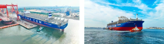 6月23日,大連造船大船天津建造的甲醇雙燃料動力15000TEU集裝箱船出塢。