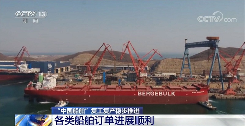 ????眼下全國(guo)在做好疫情(qing)防控的同(tong)時,復(fu)(fu)工(gong)復(fu)(fu)產的速度不(bu)斷加(jia)(jia)快,我國(guo)經濟也呈現(xian)加(jia)(jia)速回暖態勢。我國(guo)是(shi)世界第(di)一(yi)(yi)造船(chuan)(chuan)(chuan)大國(guo),船(chuan)(chuan)(chuan)舶訂單(dan)一(yi)(yi)直穩居全球第(di)一(yi)(yi),今年以來,中國(guo)船(chuan)(chuan)(chuan)舶工(gong)業(ye)的生產和研發也受到疫情(qing)的一(yi)(yi)定影(ying)響。復(fu)(fu)工(gong)復(fu)(fu)產以來,我國(guo)船(chuan)(chuan)(chuan)舶工(gong)業(ye)的生產進(jin)展(zhan)如何?下面就和記者一(yi)(yi)起走進(jin)各大船(chuan)(chuan)(chuan)廠去看看。