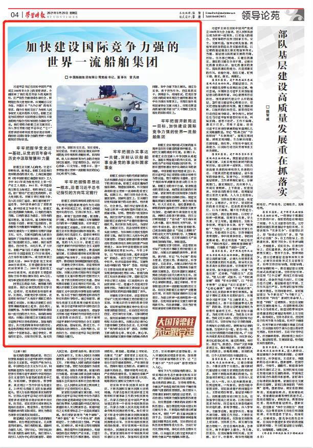 9月29日,《學習時(shi)報》刊發(fa)中國船(chuan)舶集團黨(dang)組書記、董(dong)事長雷凡培署(shu)名(ming)文(wen)章《加快建(jian)設國際(ji)競爭力強的世(shi)界一流船(chuan)舶集團》,現全文(wen)分享如下。