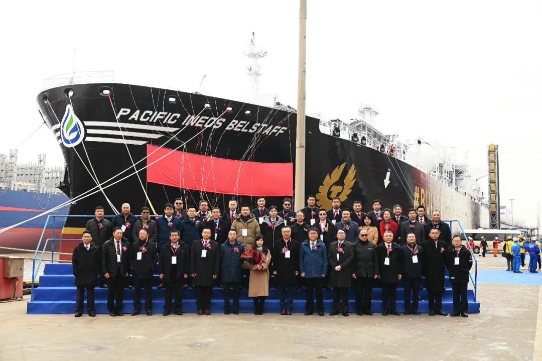 此外,江南造船還有3艘99000立方米VLEC同型船在建,計劃于明年全部交付。“PACIFIC INEOS BELSTAFF”號是江南造船2021年度交付的最后一艘產品,標志著江南造船圓滿完成全年12型30艘產品的生產任務。