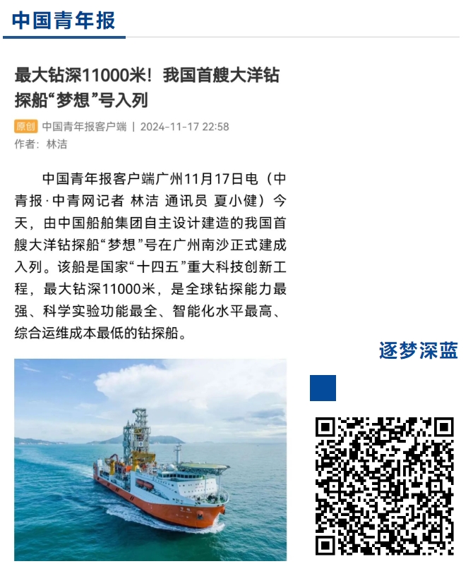 11月17日,中國(guo)船舶(bo)集團自主設計建造的我國(guo)首艘大洋鉆探船“夢想”號在(zai)廣(guang)州南沙交(jiao)(jiao)付入(ru)列,人(ren)民日報、新華社、央視等(deng)媒體(ti)的記者(zhe)來(lai)到交(jiao)(jiao)付現場(chang)進行報道 。