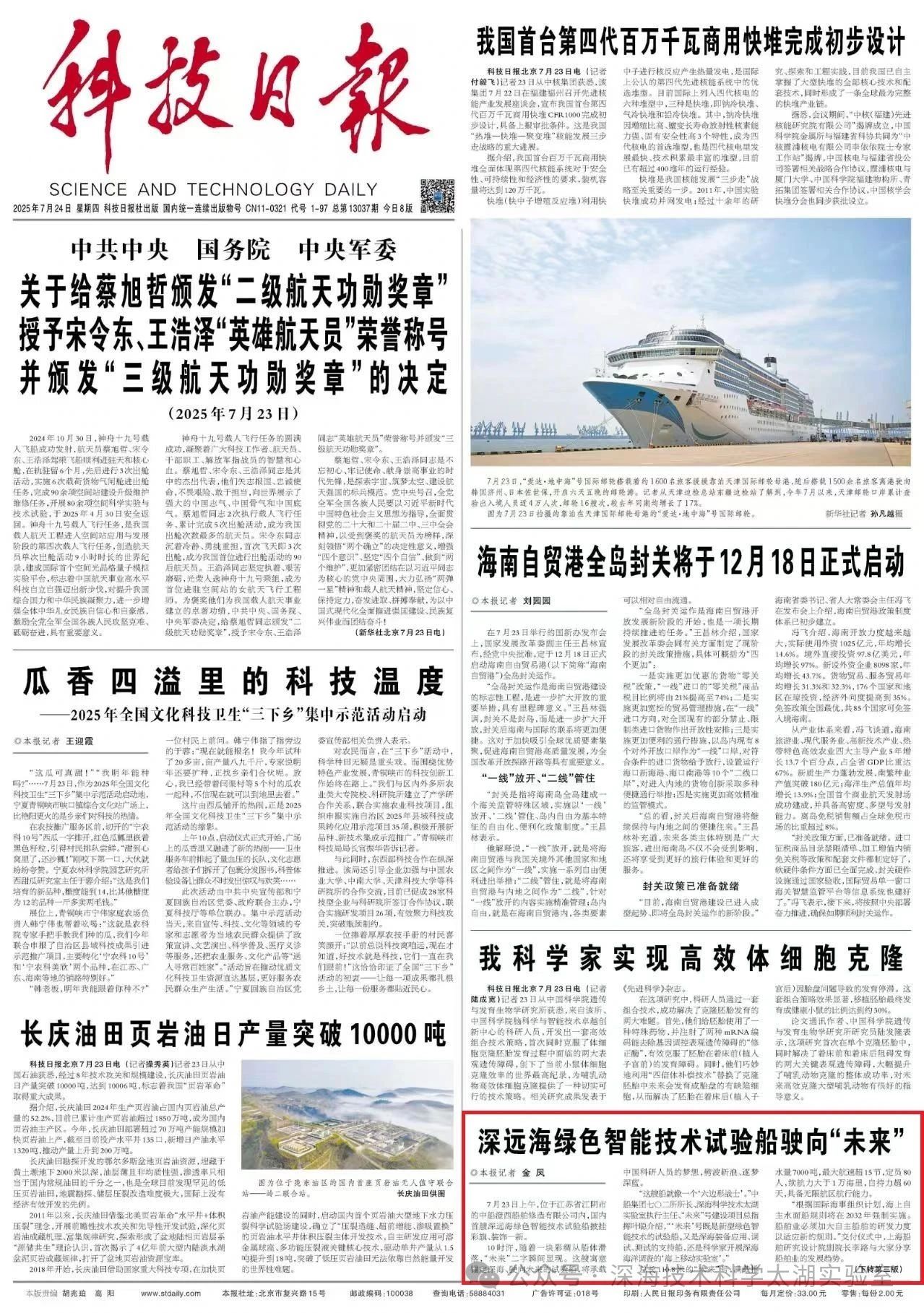 《科技日報》頭版